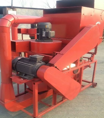 3、花生粒及破碎的花生殼在轉(zhuǎn)子的旋轉(zhuǎn)風(fēng)壓及打擊下,通過一定孔徑的篩網(wǎng)(花生第一次脫粒用大孔篩網(wǎng),清選后的小皮果更換成小孔篩網(wǎng)進(jìn)行第二次脫殼),這時(shí),花生殼、粒受到旋轉(zhuǎn)風(fēng)扇的吹力作用,重量輕的花生殼被吹出機(jī)體外。